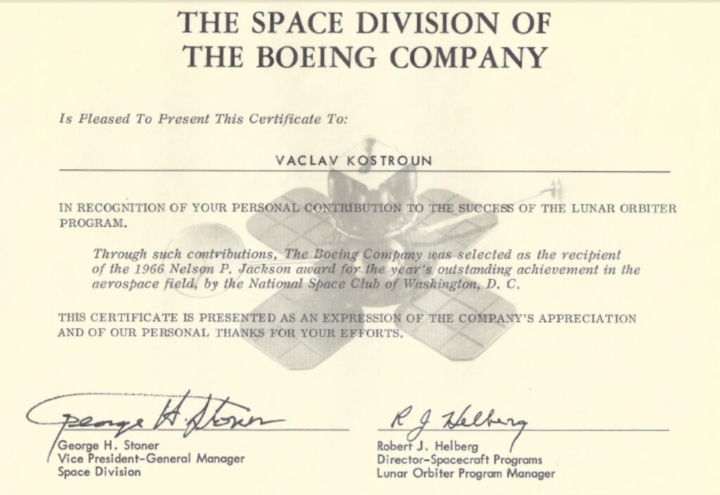 ocenění od firmy Boeing za účast na lunárním programu